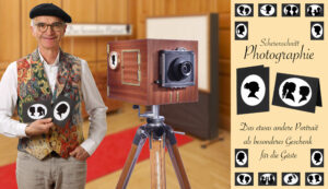 Mit meinem Photo-Labor-Apparat fertige ich auf Hochzeiten und anderen Events Silhouetten-Portraits der Gäste an, die ich nach der Belichtung direkt analog entwickele. Die individuellen Silhouetten-Photos werden dann in ein handgefertigtes Passepartout gegeben und sind ein ganz besonderes Geschenk für die Gäste.